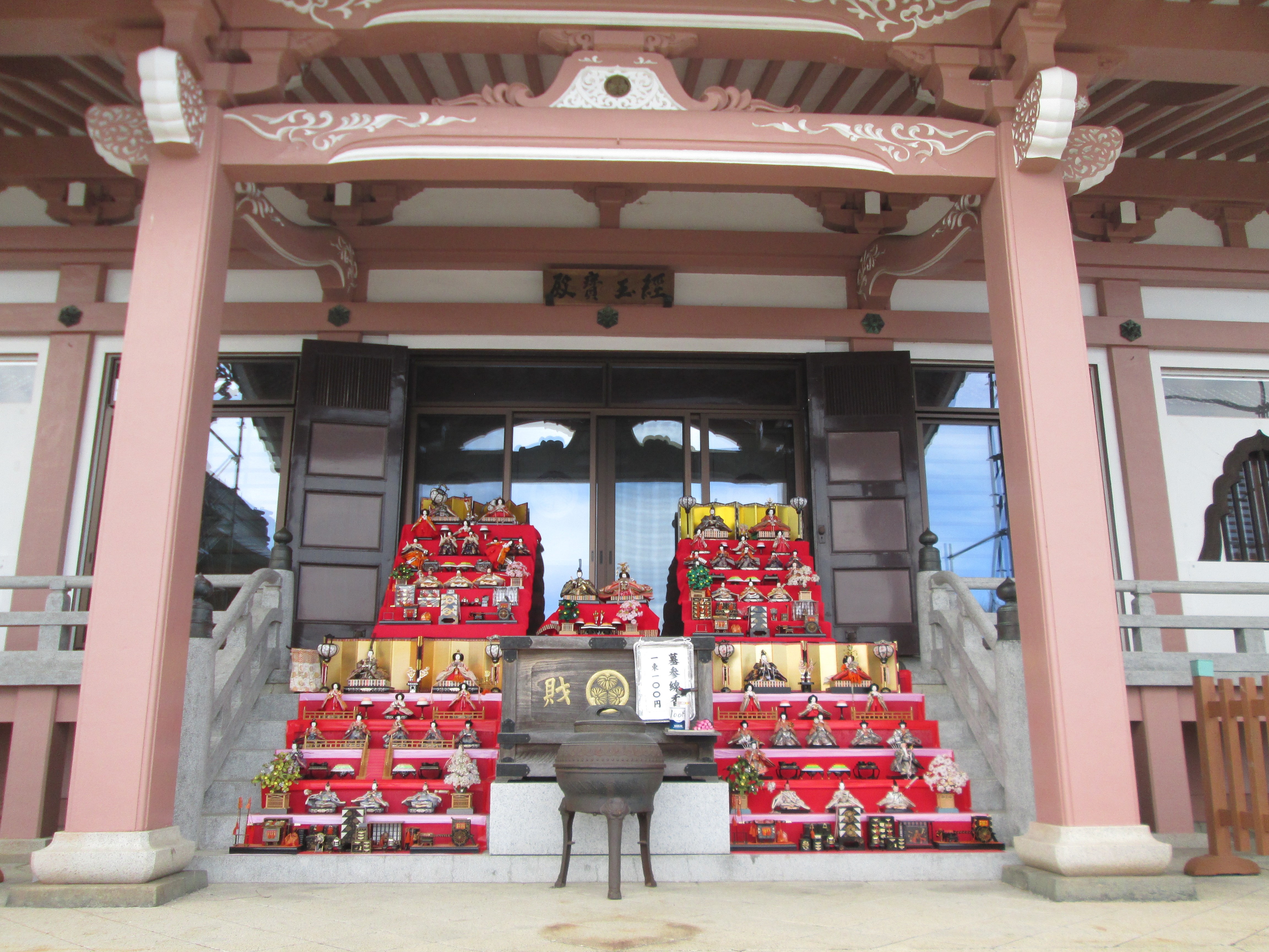 納められた内裏びなは、納められた方々の希望の場所に設置することはできません。膨大のお雛さまですので、納められた方々がわかるような飾り方は困難なことをご理解願います。境内中に、納められたお雛さまは、久昌寺施設前内・境内階段・鐘楼付近・虚空蔵堂前・本堂前・玄関前等に、毎年50セット以上が飾られ、それ以上お焚き上げ供養もされております。