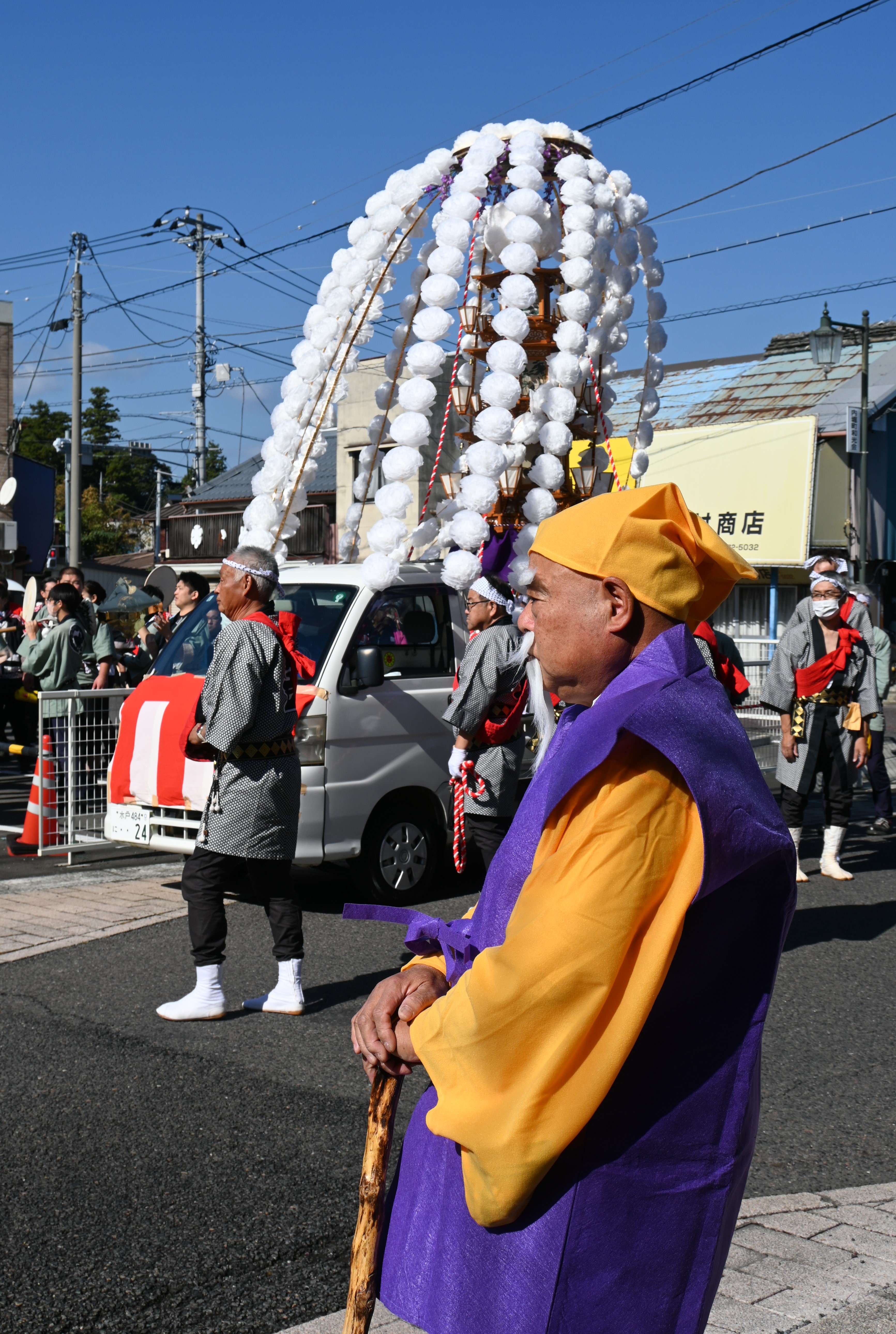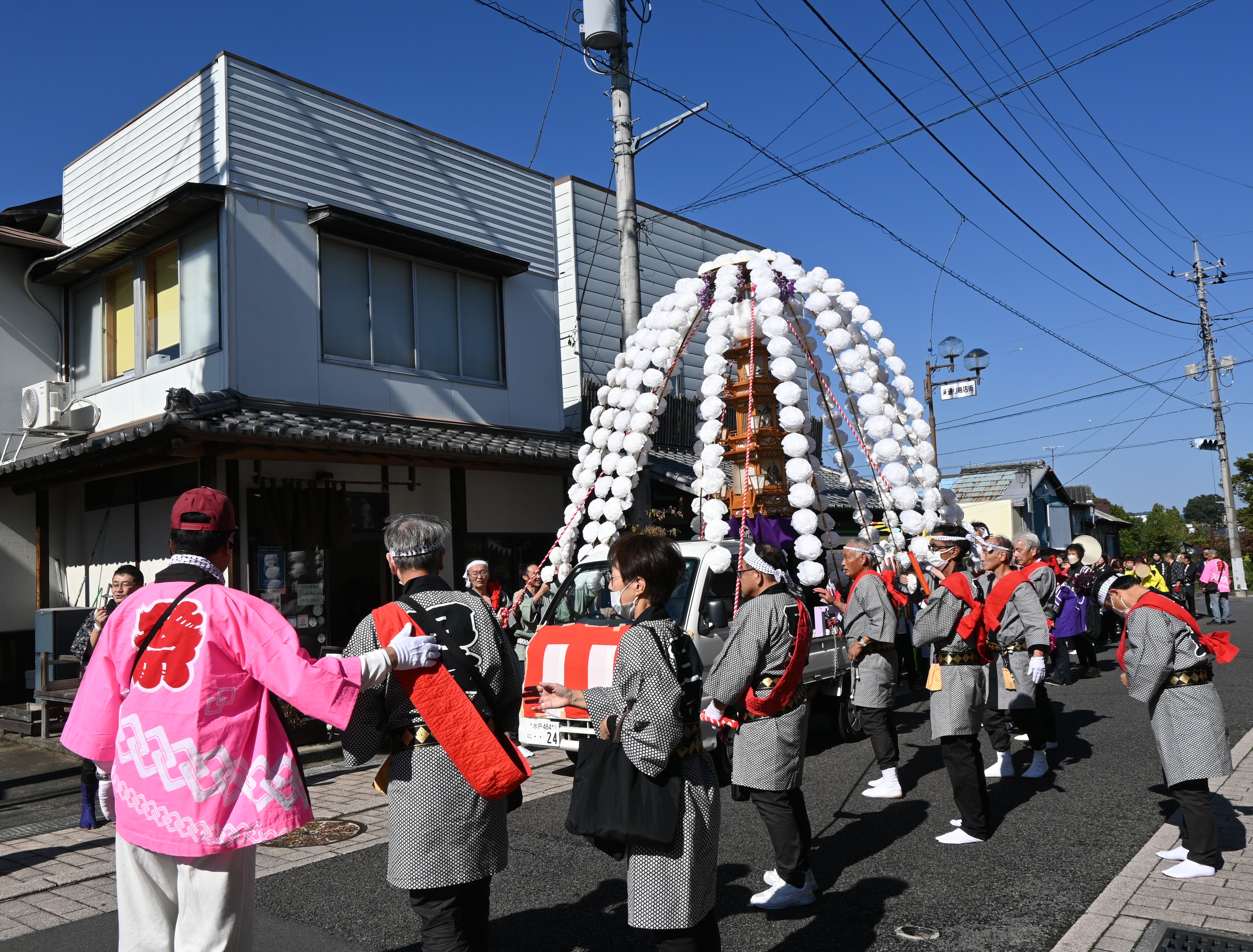 令和7年11月3日(月)祝日 午前11:00 出立式 常陸太田市東一町きくや前P→塩横町(小沢時計店前)→花てまり前→郵便局前→若宮八幡下→西下通り→セブンイレブン宮本町手前→西山高校手前→
